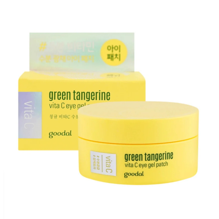 Осветляющие патчи для век Goodal Green Tangerine Vita C Eye Gel Patch тонизируют, освежают и увлажняют, отбеливают гиперпигментацию и уменьшают тёмные круги под глазами, делают взгляд отдохнувшим и свежим, борются с отёками.