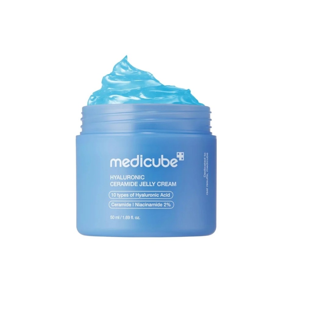 Крем-гель medicube Hyaluronic Ceramide Jelly Cream избавляет от сухости и чувства стянутости, препятствует шелушению, укрепляет защитный гидролипидный барьер.