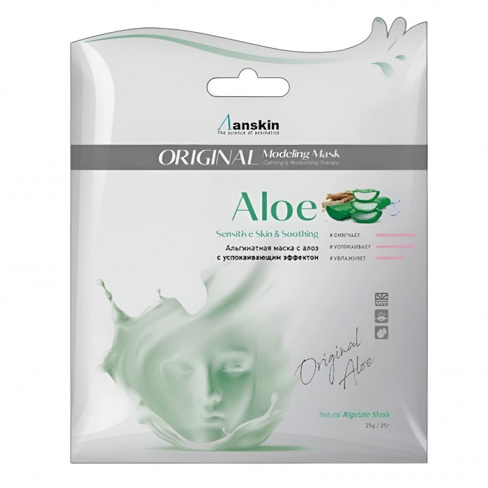 Альгинатная маска Anskin Aloe Modeling Mask с экстрактом алоэ вера рекомендована для чувствительной, склонной к раздражению и воспалению кожи. Освежает и успокаивает, регулирует работу сальных желёз, обладает бактерицидным действием. Осветляет нежелательную пигментацию и улучшает цвет лица.