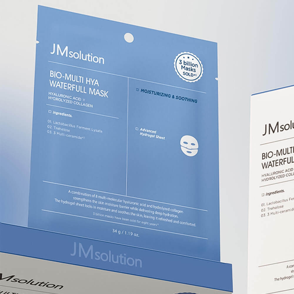 Маска JMsolution Bio-Multi Hya Waterfull Mask избавляет от сухости, шелушения и ощущения стянутости, восполняет недостаток влаги, успокаивает и смягчает.