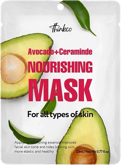 Питательная тканевая маска с авокадо и церамидами Thinkco Avocado+ Ceramide Nourishing Mask Pack Питательная тканевая маска с авокадо и церамидами укрепляет защитные функции эпидермиса, восстанавливает поврежденные клетки кожи, активно питает и борется с сухостью. Экстракт авокадо питает, смягчает, увлажняет, делает кожу нежной и бархатистой, а также насыщает полезными витаминами и минералами. Церамиды NP улучшают защитные и барьерные функции, нормализуют гидролипидный баланс, защищают от обезвоживания, обладают омолаживающим эффектом. Комплекс растительных экстрактов оздоравливает и улучшает общее состояние кожи, обладает лечебным и восстанавливающим действием. Гиалуроновая кислота проникает в глубокие слои эпидермиса, активно увлажняет клетки, способствует удержанию влаги. Подходит для всех типов кожи.