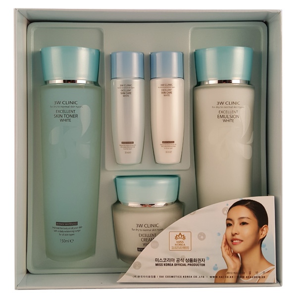 В наборе тонер, эмульсия, крем и 2 миниатюры. Средства предназначены для сухой и нормальной кожи, помимо осветления увлажняют и освежают, дарят чувство комфорта.