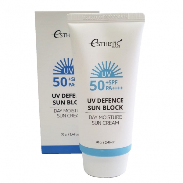 Солнцезащитный крем Esthetic House UV Defence Sun Block Day Moisture Sun Cream SPF 50+ / PA+++ защищает от всех видов УФ-лучей (UVA & UVB). Предотвращает появление ожогов и покраснений, вызванных UVB-лучами, блокирует UVA-лучи, провоцирующие преждевременное старение кожи, уменьшение эластичности и появление морщин. Имеет легкую текстуру, интенсивно увлажняет кожу, не оставляет липкости и белого налета.