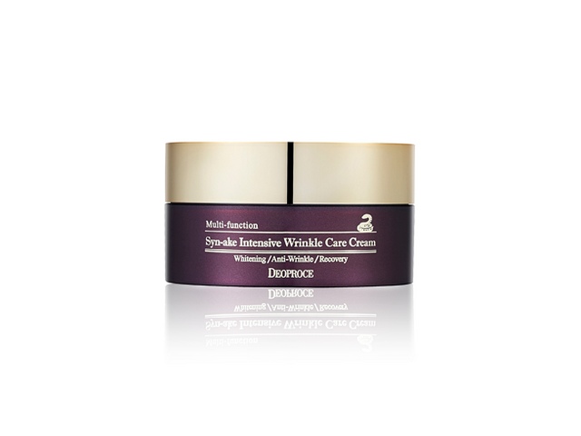Инновационный крем с синтетическим пептидом Syn-ake, действие которого подобно змеиному яду гадюки снижает уровень работы мимической мускулатуры. Такой крем является конкурентом эстетической хирургии и позволяет заменить инъекции ботокс.
