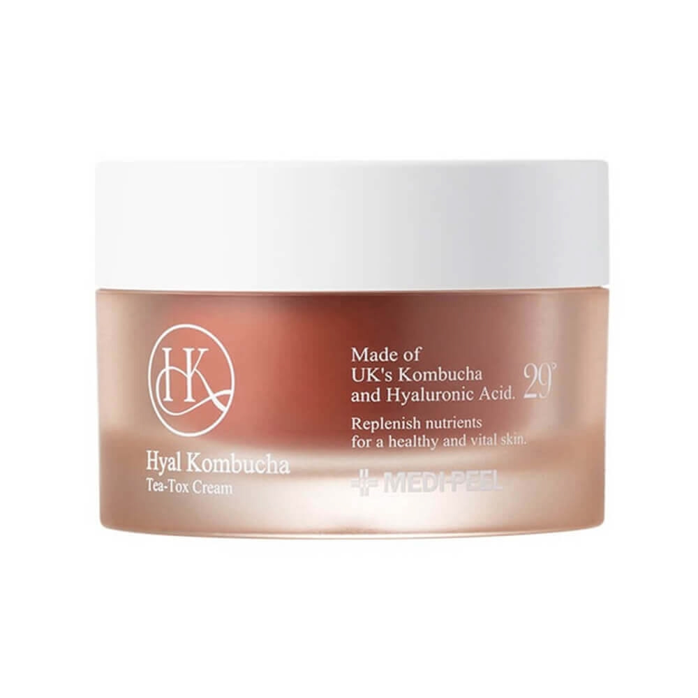 Двойной крем Medi-Peel Hyal Kombucha Tea-Tox Cream восстанавливает, увлажняет и питает кожу, уменьшает видимость морщин, придаёт упругость и плотность. Борется с сухостью и шелушением, устраняет тусклость, делает кожу гладкой и сияющей.