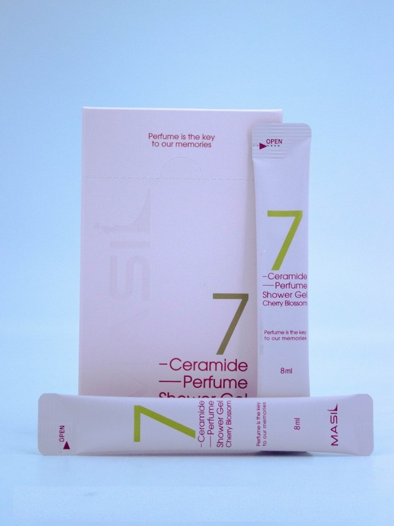 Гель 7 Ceramide Perfume Shower Gel Cherry Blossom от Masil обладает ароматом цветов вишни, обогащен керамидами и предназначен для регулярного очищающего ухода за телом.