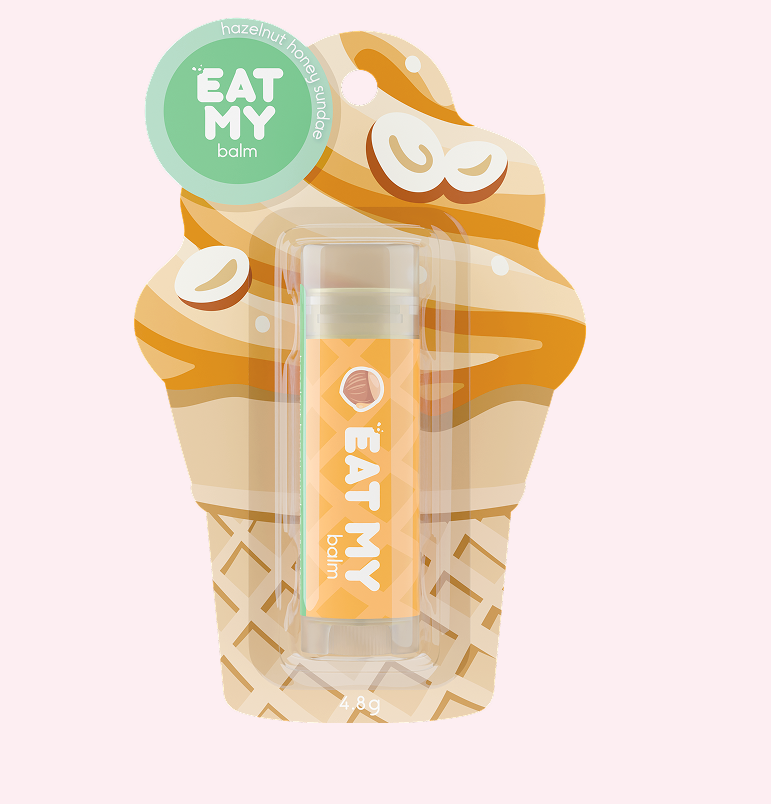 Бальзам с ароматом "Пломбир с медом, фундуком" бережно увлажняет и питает губы, помогая им оставаться ухоженными и мягкими в течение дня. Всё дело — в особом рецепте: