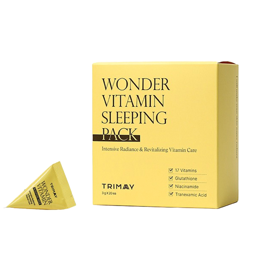 Концентрированная ночная маска с витамином С и ниацинамидом Trimay Wonder Vitamin Sleeping Pack вернёт серой тусклой коже со следами усталости ровный тон и здоровое сияние. Средство интенсивно работает в течение ночи, помогает восстановить кожу во время сна. Гелевая текстура маски быстро впитывается и создает защитный слой, насыщает кожу влагой и восстанавливает её барьерные функции.