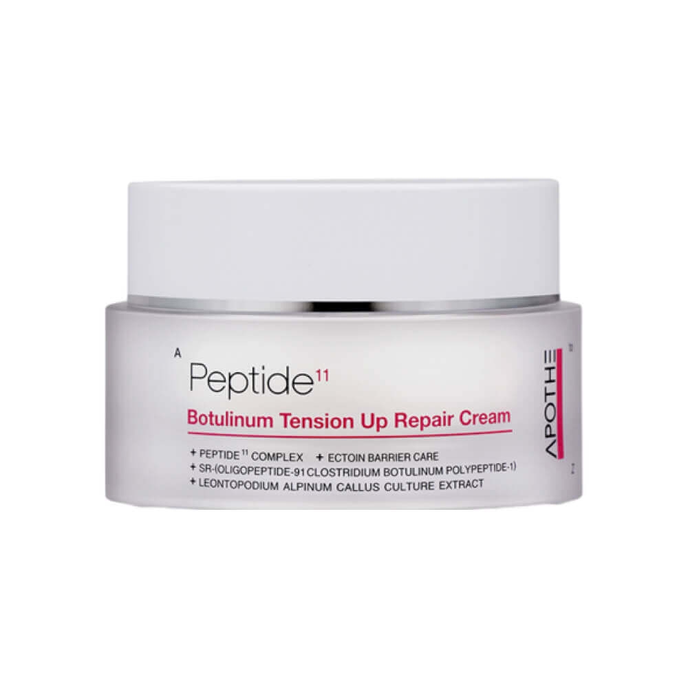 Липосомальный лифтинг-крем с ботулином APOTHE Peptide 11 Botulinum Tension Up Repair Cream обладает общеукрепляющим действием, формирует овал лица, отвечает за тругор и эластичность тканей. Помогает уплотнить и напитать кожу, избавляет от сухости, стянутости и шелушений. Восстанавливает целостность липидной мантии и повышает защитные функции.