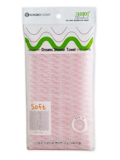 Благодаря оригинальной вязке из гофрированного волокна мочалка Dreams Shower Towel создает одновременно ощущение мягкости так и ощущение пилинга, нежно отшелушивая огрубевшую кожу.
