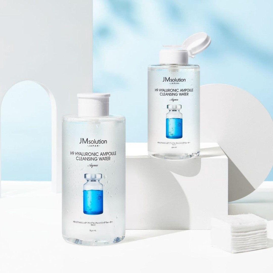 JMSolution H9 Hyaluronic Ampoule Cleansing Water гиалуроновая очищающая вода хорошо увлажняет кожу и удаляет макияж не нарушая pH-баланс. Помогает поддерживать водный баланс кожи. Содержит 9 видов гиалуроновой кислоты. Очищает лицо в один этап, не требуя дополнительного умывания водой. Не оставляет липкости на лице .Подходит: для всех типов кожи .Способ применения: смочите ватный диск и протрите им лицо, , пока макияж не будет полностью удален