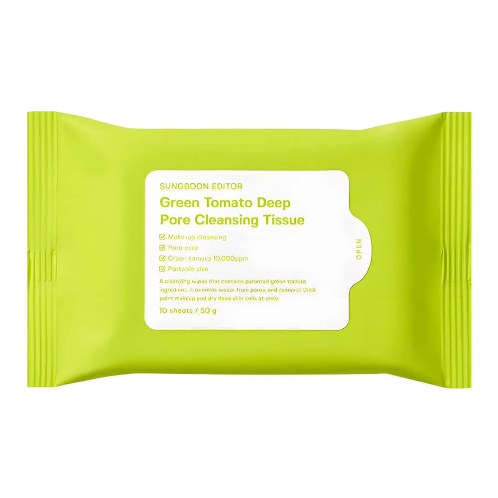 Очищающие салфетки Sungboon Editor Green Tomato Deep Pore Cleansing Tissue предназначены для очищения кожи от загрязнений и косметических продуктов, абсорбируют излишки себума. Насыщены эссенцией, которая оказывает отшелушивающее действие, выравнивает текстуру, освежает.