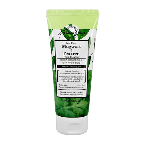 Пенка для умывания Grace Day Real Fresh Mugwort & Tea Tree Foam Cleanser прекрасно удаляет загрязнения, остатки макияжа, успокаивает кожу, помогает бороться с воспалительными процессами и уменьшает покраснения.