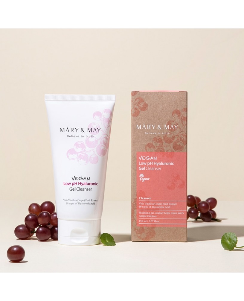 Гель для умывания веганский слабокислотный Mary&May Vegan Low pH Hyaluronic Gel to Foam Cleanser- деликатное средство для очищения любого типа кожи, которое понравится обладателям чувствительной, сухой и обезвоженной кожи. Обеспечивает мягкое очищение, не пересушивая, не вызывая чувство сухости и стянутости. В основе состава 10 видов разномолекулярной гиалуроновой кислоты, бета-глюкан и центелла азиатская. В результате гель не провоцирует покраснения и раздражения, способствует уменьшению покраснению и раздражений во время очищения. Оставляет после себя ощущение чистоты и свежести.